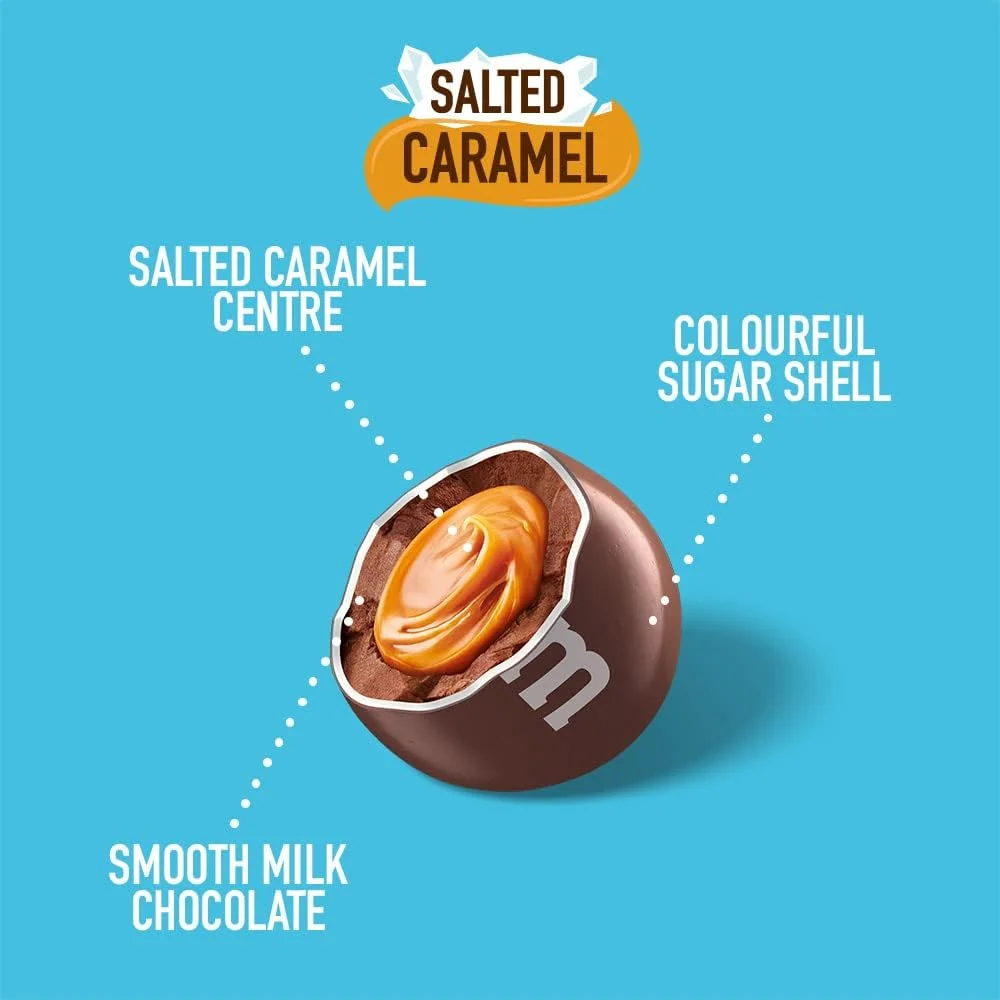 • Bite-size pieces of delicious, salted caramel wrapped in a layer of smooth, real milk chocolate and coated in a crispy, colourful sugar shell.